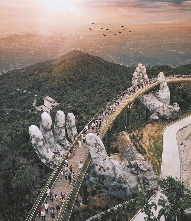 Cây cầu Vàng nổi tiếng hút khách ở Đà Nẵng, Việt Nam |