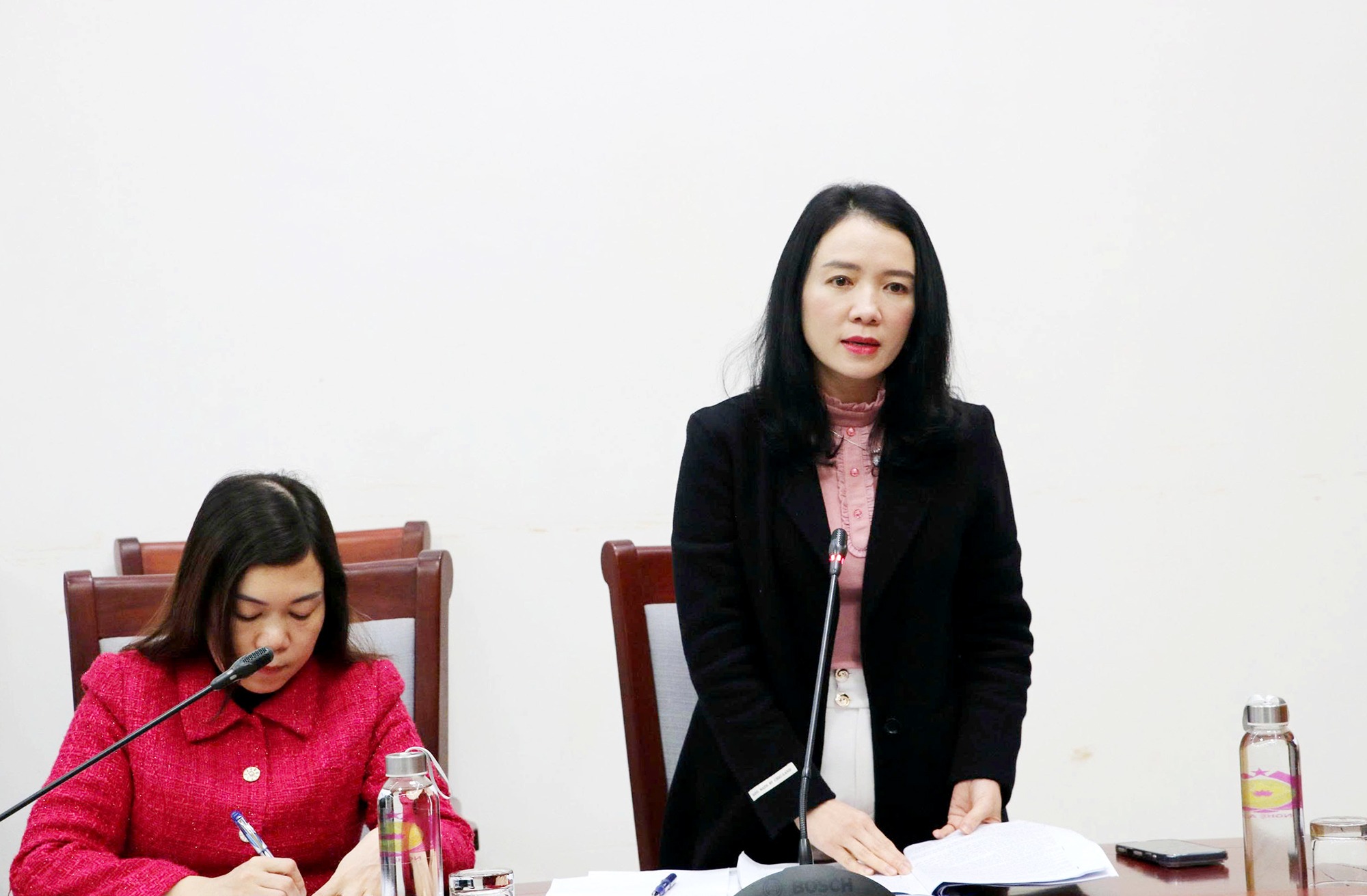 Phó Giám đốc Sở Văn hóa, Thể thao và Du lịch Quách Thị Cường báo cáo nội dung dự thảo Đề án |