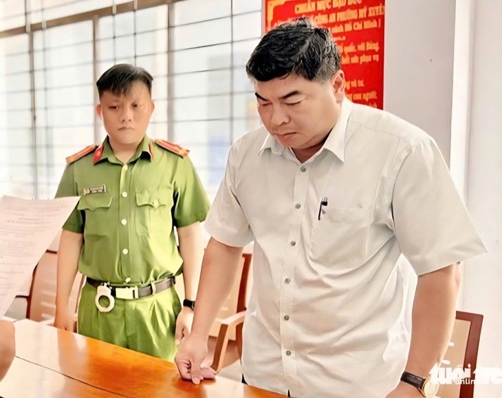 Ông Đào Văn Ngọc, cựu Phó chủ tịch UBND TP Long Xuyên, tỉnh An Giang cũ, nghe đọc quyết định bắt - Ảnh: Tư liệu TTO |