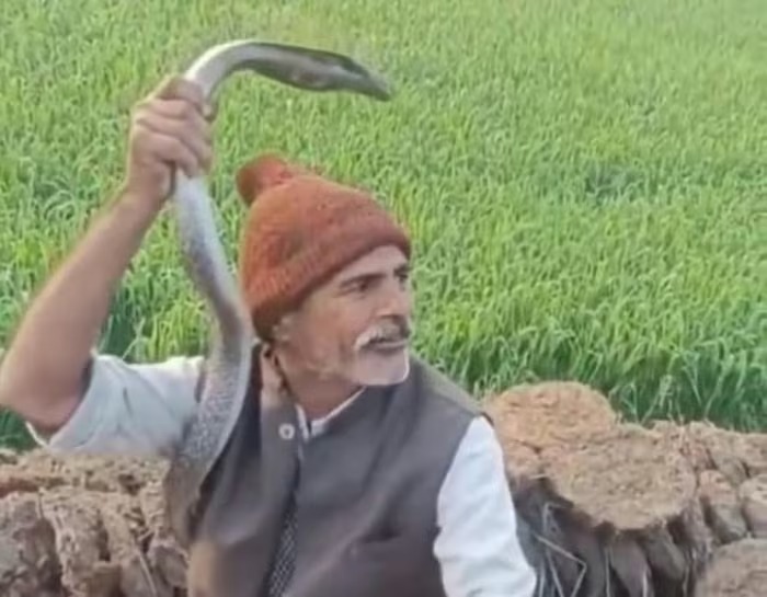 Đoạn clip ghi lại tại huyện Rampur, bang Uttar Pradesh, Ấn Độ, cho thấy một người đàn ông 50 tuổi khoe bắt được một con rắn hổ mang độc trên đường.