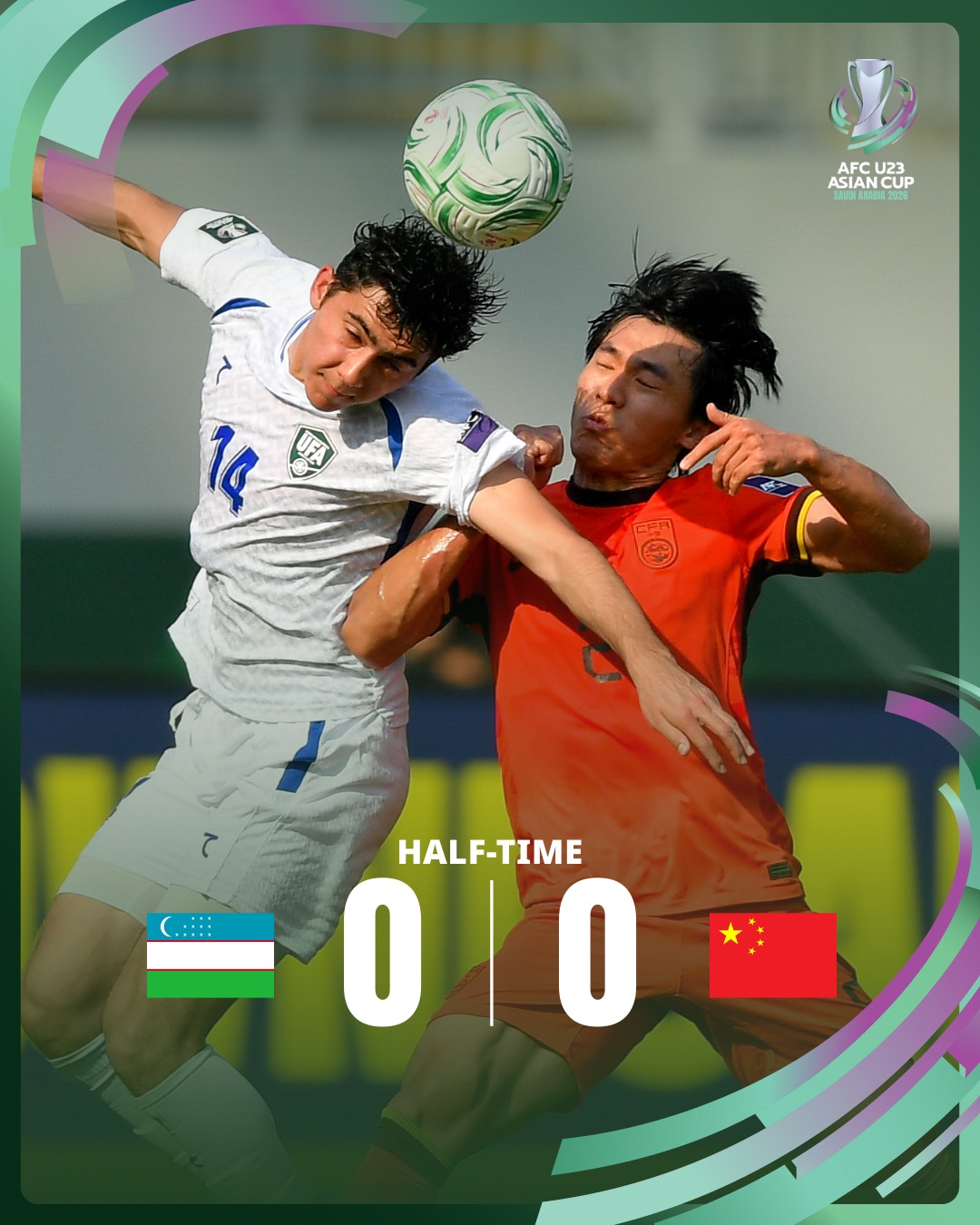 U23 Uzbekistan và U23 Trung Quốc đã cầm chân nhau với tỉ số 0-0 sau 120 phút thi đấu căng thẳng, buộc trận đấu phải bước vào loạt sút luân lưu 11 m để phân định đội giành quyền vào bán kết.