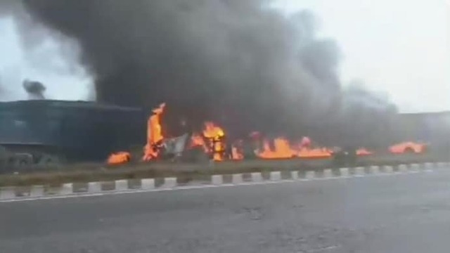 Ít nhất 2 công nhân đã thiệt mạng sau vụ va chạm liên hoàn giữa 5 xe tải hạng nặng trên đường cao tốc Kundli-Manesar-Palwal (KMP) thuộc huyện Nuh, bang Haryana, Ấn Độ, vào sáng ngày 19/1. Vụ tai nạn đã gây ra một đám cháy lớn, thiêu rụi một container của Amazon chở hàng hóa, theo cảnh sát.