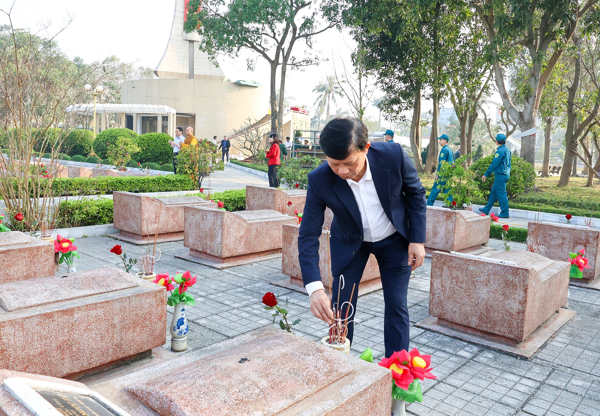 Các đồng chí lãnh đạo tỉnh, xã, phường, thân nhân liệt sỹ, đồng đội của các liệt sỹ dâng hoa, dâng hương tưởng niệm các Anh hùng liệt sỹ tại Nghĩa trang Liệt sĩ Thành phố Vinh |