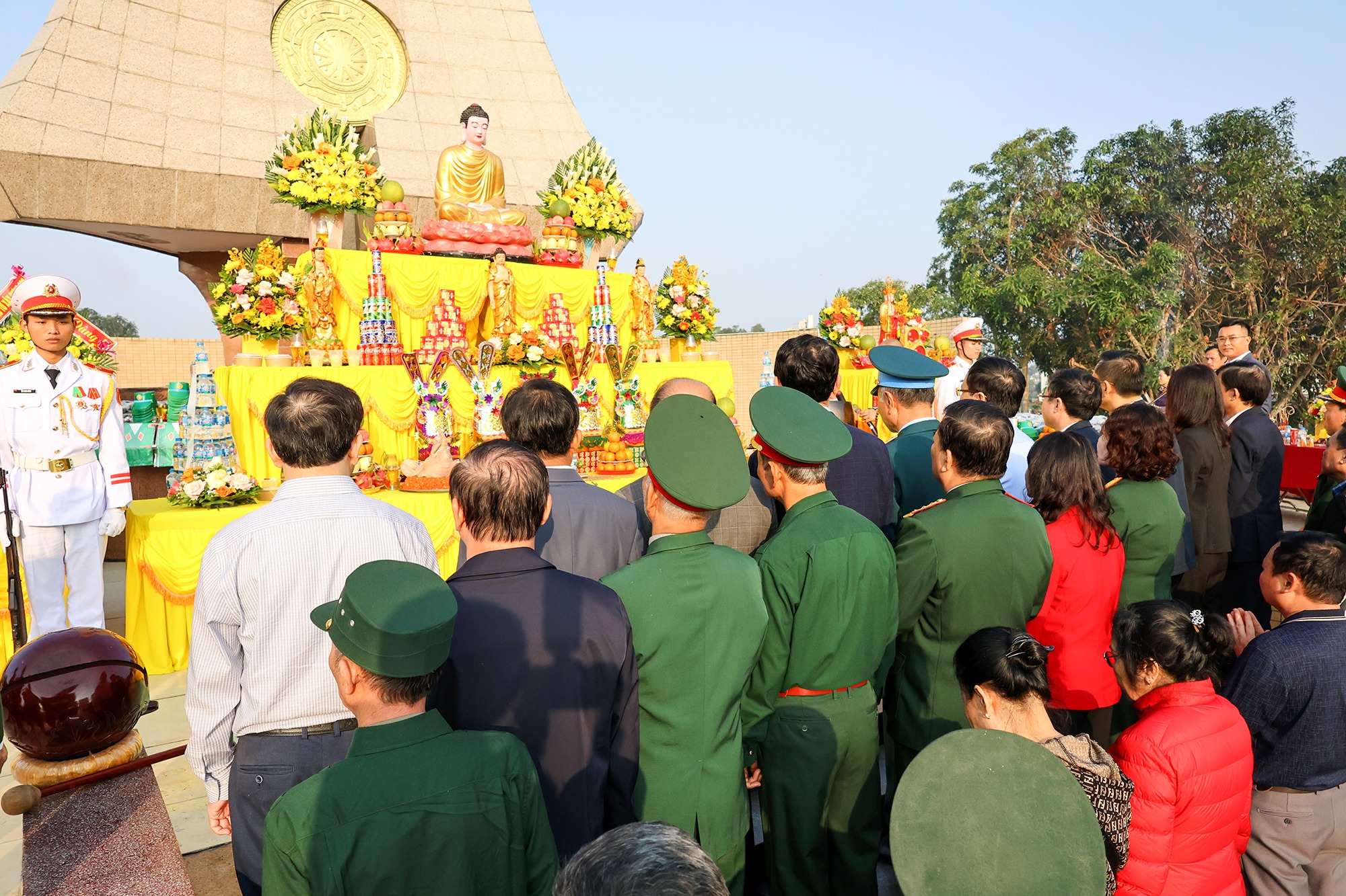 Tại buổi lễ, Đại diện Ban Trị sự Giáo hội Phật giáo tỉnh Nghệ An đã thực hiện nghi thức thỉnh chuông cầu nguyện cho các Anh hùng liệt sỹ |
