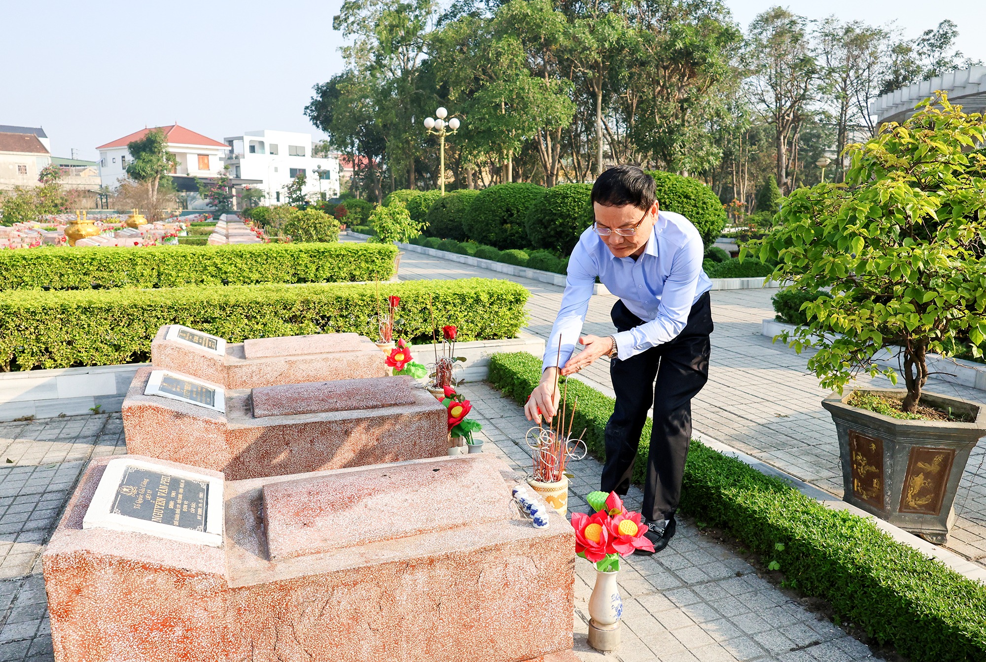 Các đại biểu thắp hương tại các phần mộ của các Anh hùng liệt sỹ |