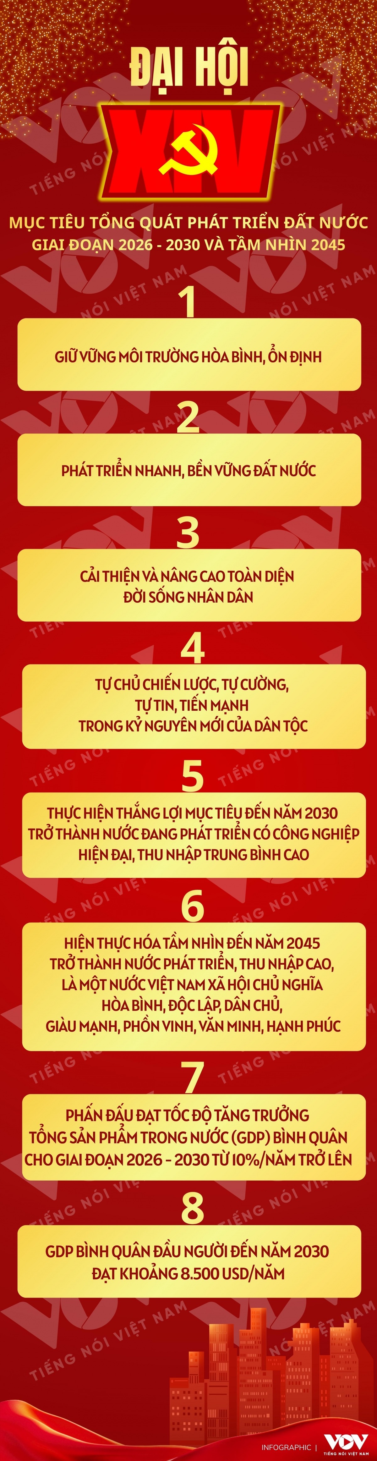 Mục tiêu tổng quát phát triển đất nước giai đoạn 2026-2030 và tầm nhìn 2045