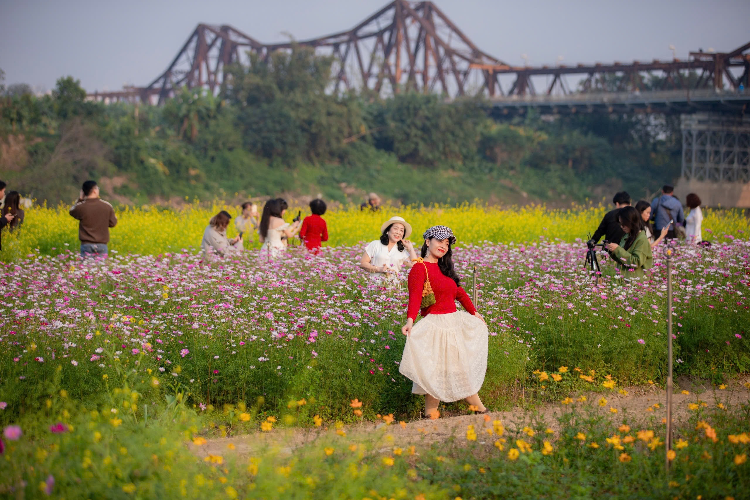 Vào mùa lau nở, bãi giữa sông Hồng phủ một gam trắng ngà, không gian trở nên thoáng đãng và yên bình hơn. Cảnh quan này tạo nên điểm nhấn đặc biệt giữa lòng đô thị. Cách đó không xa, khu vực dưới chân cầu Long Biên cũng thu hút mọi người đến tham quan, ngắm nhìn những bãi hoa cánh bướm, hoa cải nở rộ vào mùa đông. Sắc hoa trải dài, tạo điểm nhấn sinh động, tương phản với cây cầu thép trăm năm tuổi, góp phần làm nổi bật diện mạo cảnh quan ven sông.