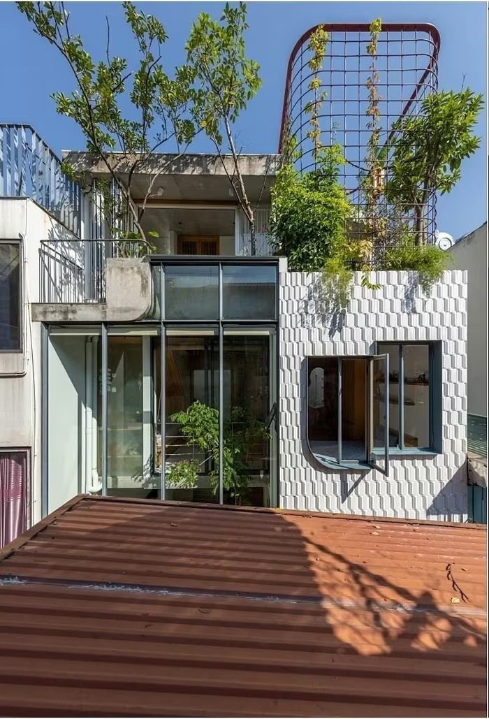 Nằm ẩn mình trong ngõ hẹp tại Hà Nội, TH+ House tọa lạc trên một khu đất hạn chế, mặt tiền rộng 2,5 mét, chỉ tiếp cận bằng lối đi bộ. Ảnh: Hoàng Lê |