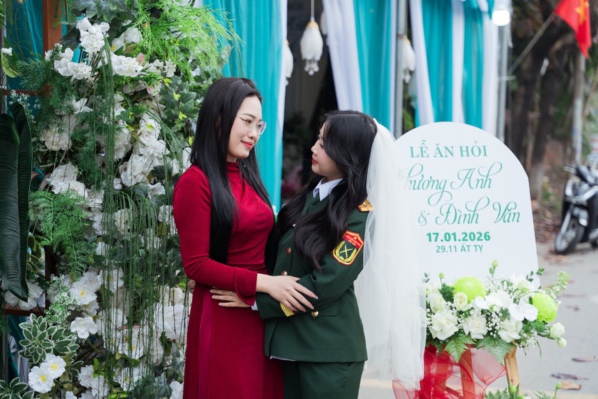 Chia sẻ với Tri Thức - Znews, cô dâu Phương Anh cho biết cả cô và chồng đều đang công tác trong ngành quân đội. Chính vì vậy, việc lựa chọn quân phục trong ngày trọng đại không chỉ là một quyết định mang tính thẩm mỹ, mà còn xuất phát từ niềm tự hào nghề nghiệp.