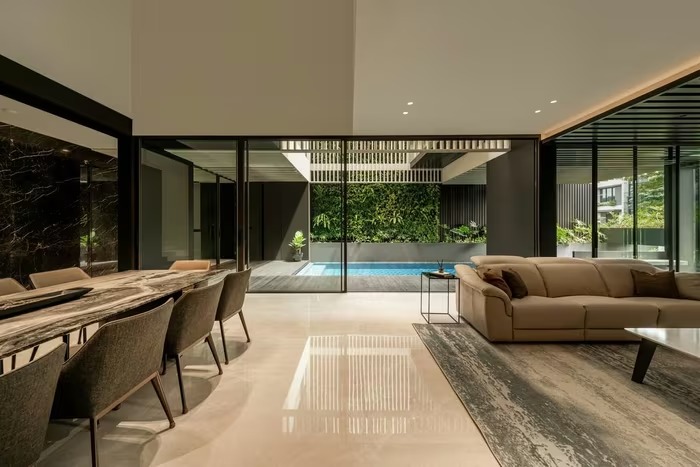 Tọa lạc trong một khu đô thị đông đúc tại Indonesia, căn biệt thự được thiết kế cho một gia đình nhiều thế hệ, với yêu cầu bố trí đầy đủ chức năng, đồng thời đảm bảo riêng tư và thông thoáng. Ảnh: Arte Haus |
