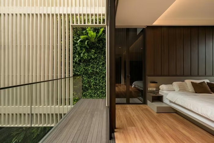 Các giải pháp thụ động như che nắng, thông gió chéo, lớp đệm cây xanh được triển khai xuyên suốt nhằm giảm phụ thuộc vào hệ thống cơ điện. Ảnh: Arte Haus |