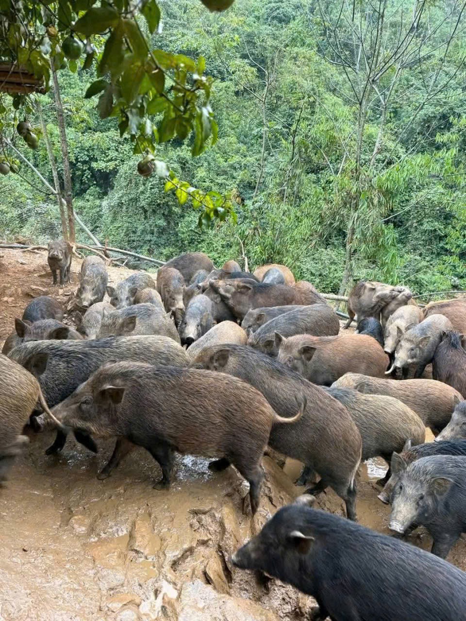 Đàn lợn rừng trong trang trại của anh Phương đang chờ bán trong dịp Tết nguyên đán sắp tới |