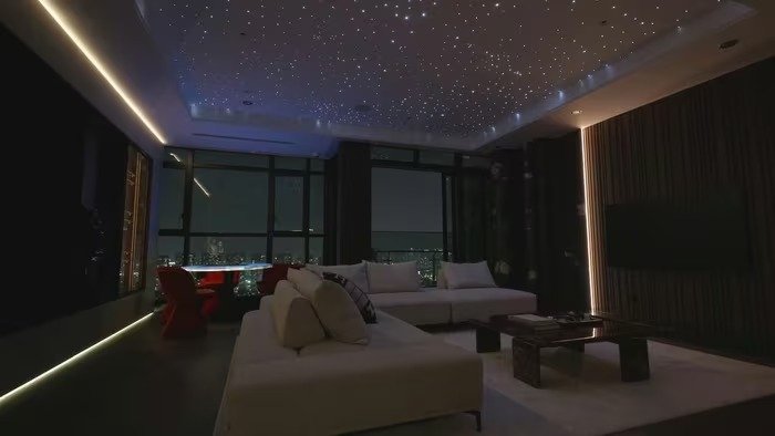 Toàn bộ thiết bị điện thông minh đều được thiết kế ẩn mình trong căn penthouse. Ảnh chụp màn hình |