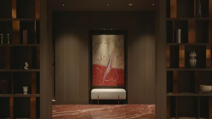 Từ dòng đá Avocado Green của Brazil, thạch anh Patagonia từ Chile cho đến sắc đỏ Rosso cực phẩm từ Ý đều được đưa vào thiết kế một cách tinh tế. Ảnh chụp màn hình |