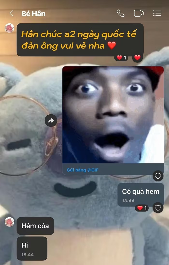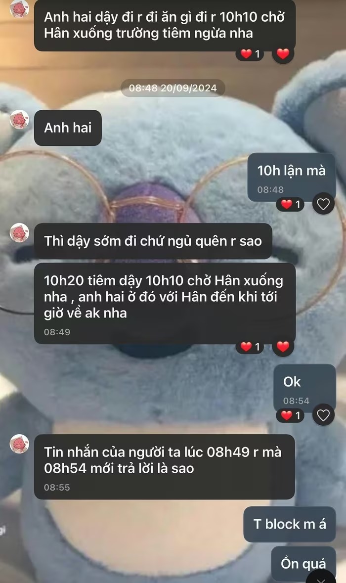 Mới đây, một bộ ảnh chụp màn hình tin nhắn giữa một người anh trai (21 tuổi) và cô em gái nhỏ (9 tuổi, tên Hân) đã bất ngờ "xâm chiếm" mạng xã hội. Chỉ sau vài giờ đăng tải, bài viết đã nhanh chóng thu về hàng trăm nghìn lượt thích và hàng chục nghìn bình luận, tạo nên một cơn sốt vì sự tương tác vừa hài hước, vừa ngọt ngào của cặp anh em này. |