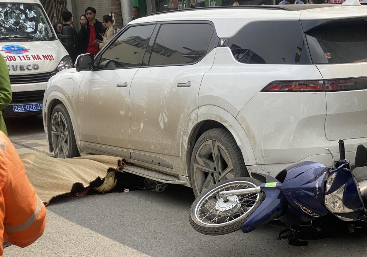 Theo thông tin ban đầu, vào thời điểm trên, một ô tô 7 chỗ nhãn hiệu VinFast VF9 trong quá trình lùi xe bất ngờ cuốn người và xe máy vào gầm xe.
