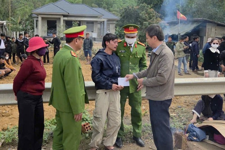 Lãnh đạo xã Hướng Hiệp (phải) có mặt động viên người nhà nạn nhân - Ảnh: QUANG HÀ |