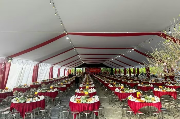 180 mâm cỗ tại nhà Đình Bắc sẵn sàng đón khách nhập tiệc chiều 28/1. |