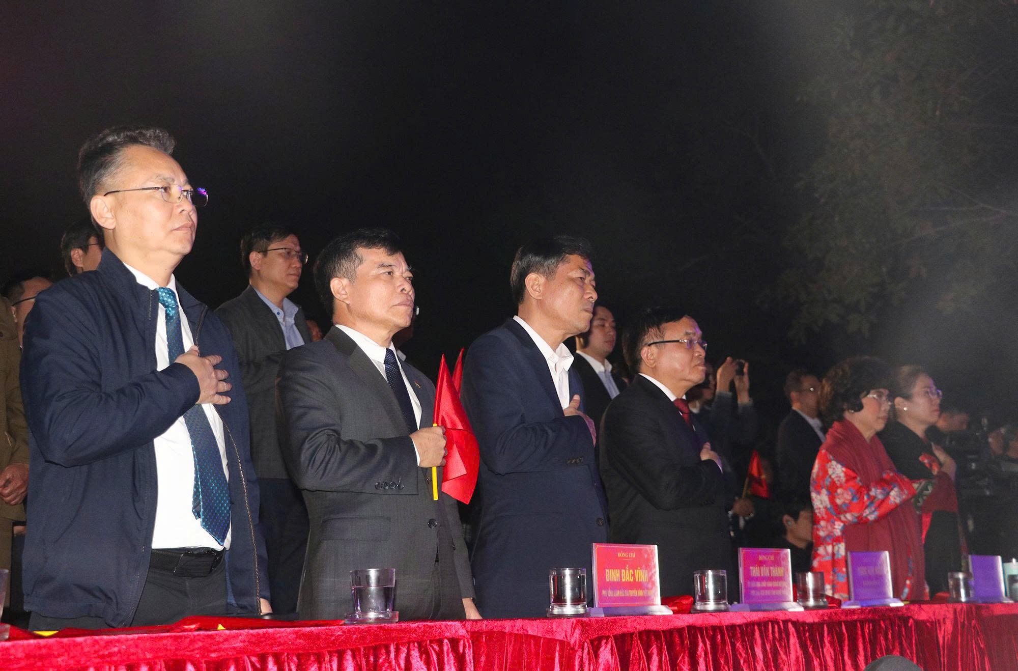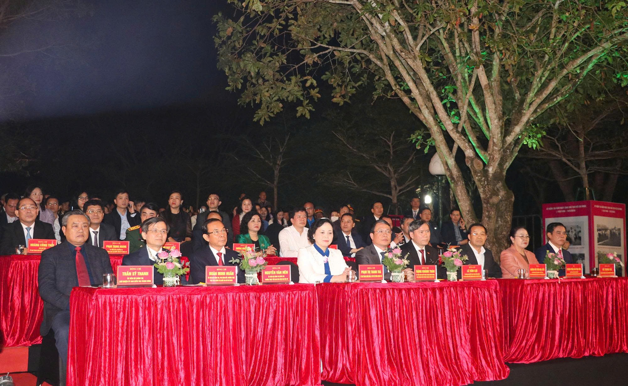 Các đồng chí Ủy viên Bộ Chính trị khoá XIII: Phan Đình Trạc - Trưởng Ban Nội chính Trung ương; Nguyễn Xuân Thắng - Giám đốc Học viện Chính trị Quốc gia Hồ Chí Minh, Chủ tịch Hội đồng lý Trung ương; Nguyễn Văn Nên - Thường trực Tiểu ban Văn kiện Đại hội XIV. Cùng tham dự có đồng chí Phạm Thị Thanh Trà – Bí thư Trung ương Đảng, Phó Thủ tướng Chính phủ; lãnh đạo các Bộ, ban, ngành; đại diện lãnh đạo Quân khu 4; đại biểu nước Cộng hòa Dân chủ Nhân dân Lào.