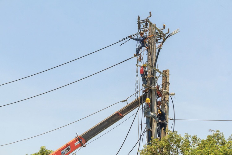 Liên danh trúng thầu đang thực hiện hợp đồng Gói thầu số 10 thuộc Dự toán Di dời hệ thống điện phục vụ giải phóng mặt bằng thuộc Khu đô thị và dịch vụ VSIP Nghệ An giai đoạn 4 và 5A. Ảnh: Thế Anh |
