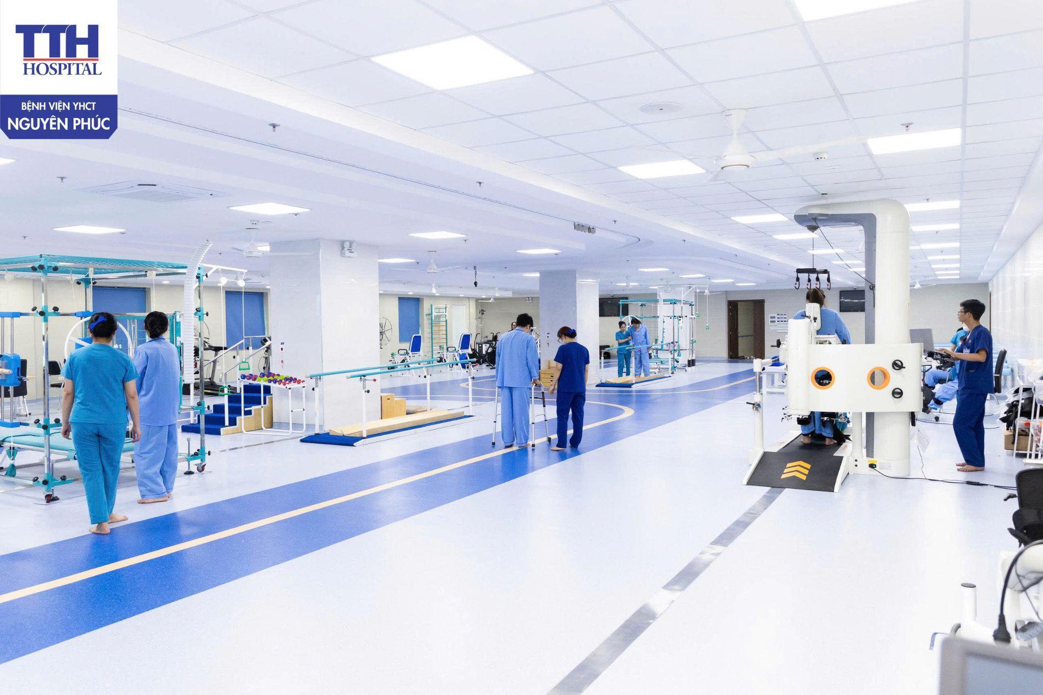 Điểm nổi bật trong hoạt động chuyên môn của Bệnh viện YHCT Nguyên Phúc là sự kết hợp hài hòa giữa YHCT và các phương pháp phục hồi chức năng hiện đại. Bên cạnh các liệu pháp truyền thống, bệnh viện đầu tư trang thiết bị y tế phục vụ phục hồi chức năng như Robot PHCN, Oxy cao áp, máy điện trị liệu, nhiệt trị liệu, sóng xung kích, kéo giãn cột sống, thiết bị tập vận động hỗ trợ…