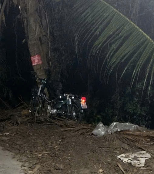 Khi đến hiện trường, người dân phát hiện chiếc xe máy nằm gần một gốc dừa ven đường và một thanh niên trong tư thế cắm đầu xuống mương nước ven đường tử vong.
