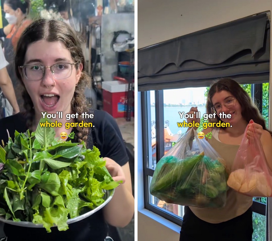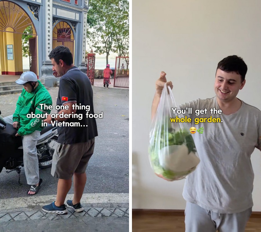 Mới đây, một đoạn video của vị khách Tây tổng hợp khi đặt đồ ăn và đi ăn ở quán Việt Nam đã nhận được rất nhiều lượt tương tác vì một nhận xét đầy hóm hỉnh. Khi bát bún vừa được bưng ra hay đồ ăn vừa giao tới, đi kèm theo đó là một đĩa rau tươi rói, chất cao như núi với đủ loại sắc màu. Vị khách này đã không giấu nổi sự kinh ngạc và đính kèm dòng chú thích khiến ai nấy đều bật cười: "Một điều khi order đồ ăn ở Việt Nam chính là bạn sẽ nhận được một khu vườn".