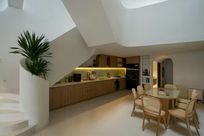 Bề mặt bo tròn cũng góp phần dẫn dắt ánh sáng, mở rộng tầm nhìn và tạo cảm giác rộng rãi hơn khi di chuyển trong nhà. Ảnh: Quang Trần |