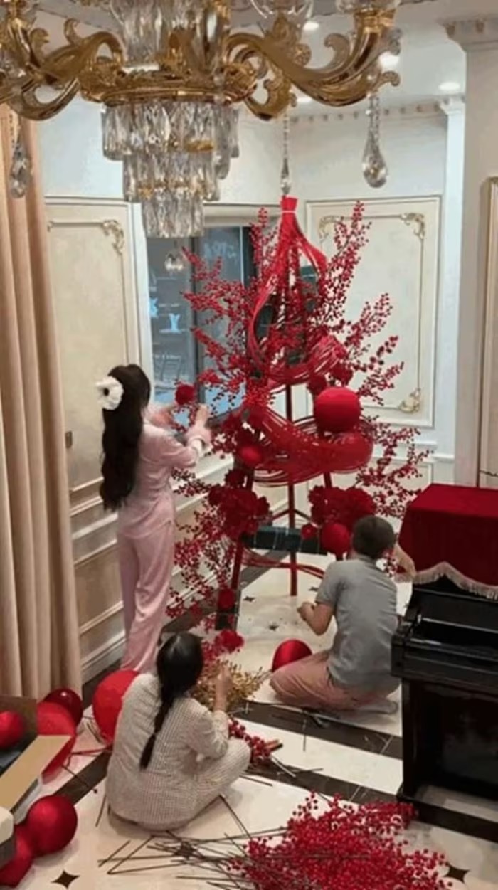 Trước đó, 3 mẹ con Hạnh Xuka cùng nhau trang hoàng nhà cửa lộng lẫy đón Giáng sinh. Ảnh: FBNV |