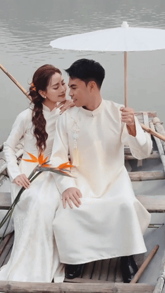 Trong bộ ảnh, MC Huyền Trang diện áo dài trắng tinh khôi, kiểu dáng truyền thống nhưng được xử lý tinh tế, tôn lên vẻ dịu dàng, nền nã. Kiểu tóc tết mềm mại, lớp trang điểm trong veo càng làm nổi bật thần thái nữ tính, đúng chuẩn "nàng thơ". Bên cạnh đó, ông xã cô - tuyển thủ Đức Huy xuất hiện trong áo dài đồng điệu, giản dị nhưng vững chãi, tạo nên tổng thể hài hòa và rất tình.