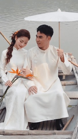 Bối cảnh sông nước, thuyền gỗ và những cành hoa thiên điểu sắc cam nổi bật trên nền trắng càng khiến bộ ảnh mang hơi thở rất Việt Nam, vừa mộc mạc vừa lãng mạn. Nhiều netizen nhận xét, xem ảnh cưới của Huyền Trang Mù Tạt không có cảm giác "choáng ngợp", nhưng càng nhìn càng thấy thấm, thấy dễ chịu và rất thật.