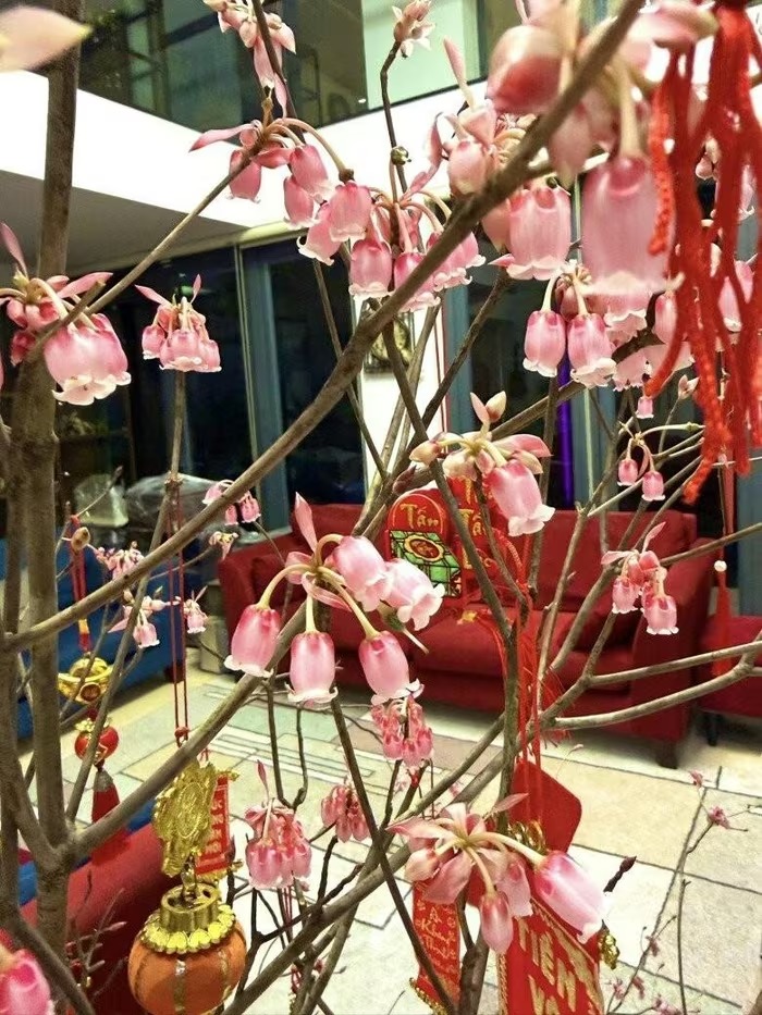 Cành đào chuông giúp không gian sống của Đàm Vĩnh Hưng thêm sang trọng. Ảnh: FBNV |