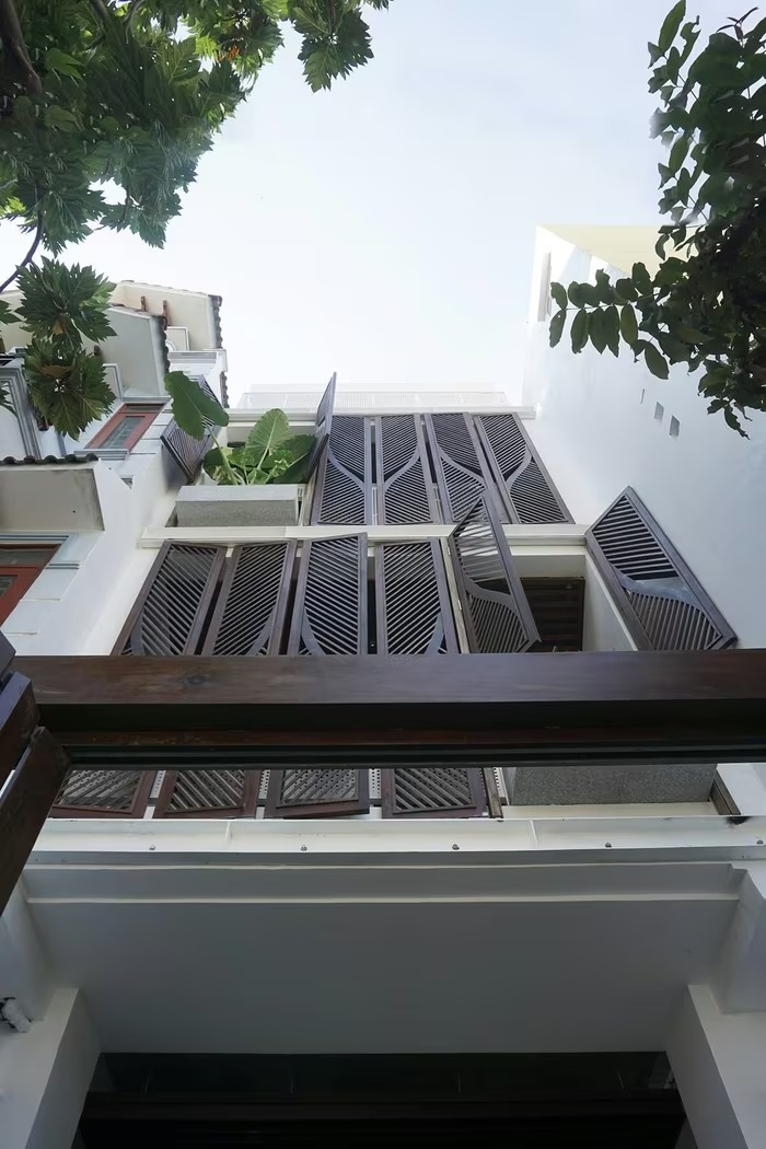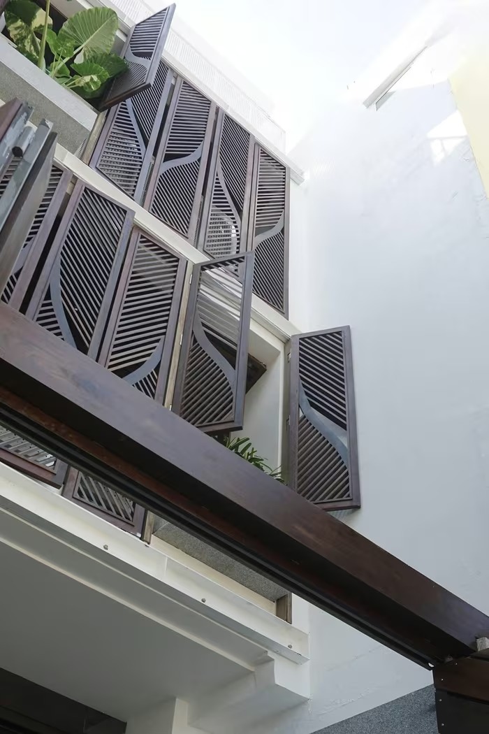 Hệ lam chắn nắng cách điệu khiến ánh sáng và bóng đổ thay đổi theo thời gian. Ảnh: Lê Quang Bình |
