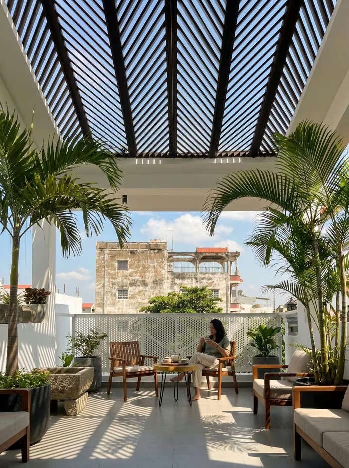 Tầng thượng là không gian thư giãn, lấy lại năng lượng sau những ngày làm việc mệt mỏi. Ảnh: Lê Quang Bình |