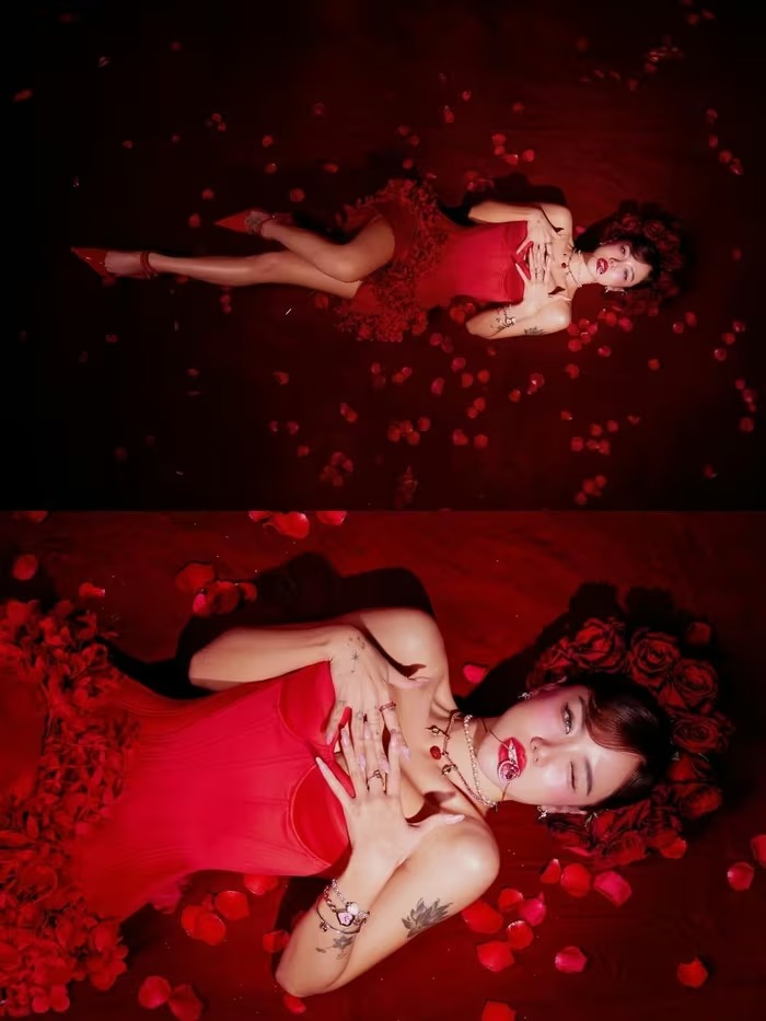 Trong loạt ảnh mới, Phương Ly hóa thân thành một "nàng hồng" kiều diễm và nóng bỏng. Với sắc đỏ trung tâm, bộ ảnh mang đến một không gian đậm chất lãng mạn nhưng cũng không kém phần bí ẩn. (Ảnh: IGNV) |