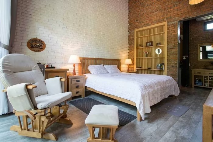 Phòng ngủ tối giản với nội thất gỗ chủ đạo. Ảnh: Tô Hữu Dũng |