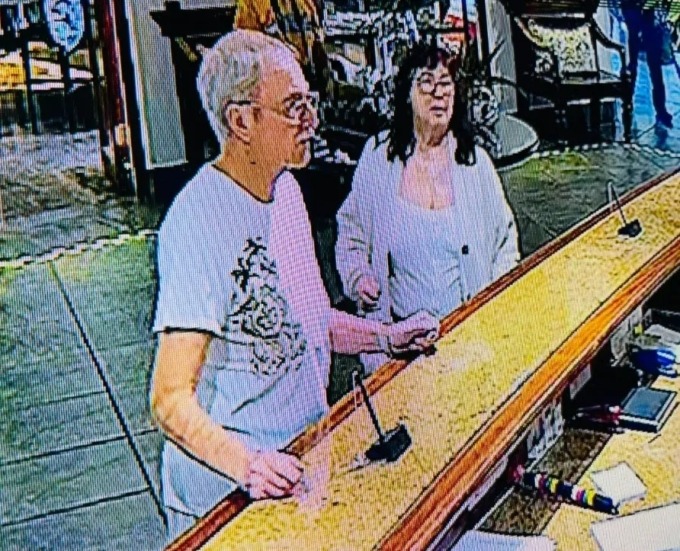 Vợ chồng Lorna ở sảnh lễ tân trong ngày bà mất tích. Ảnh: Sun |