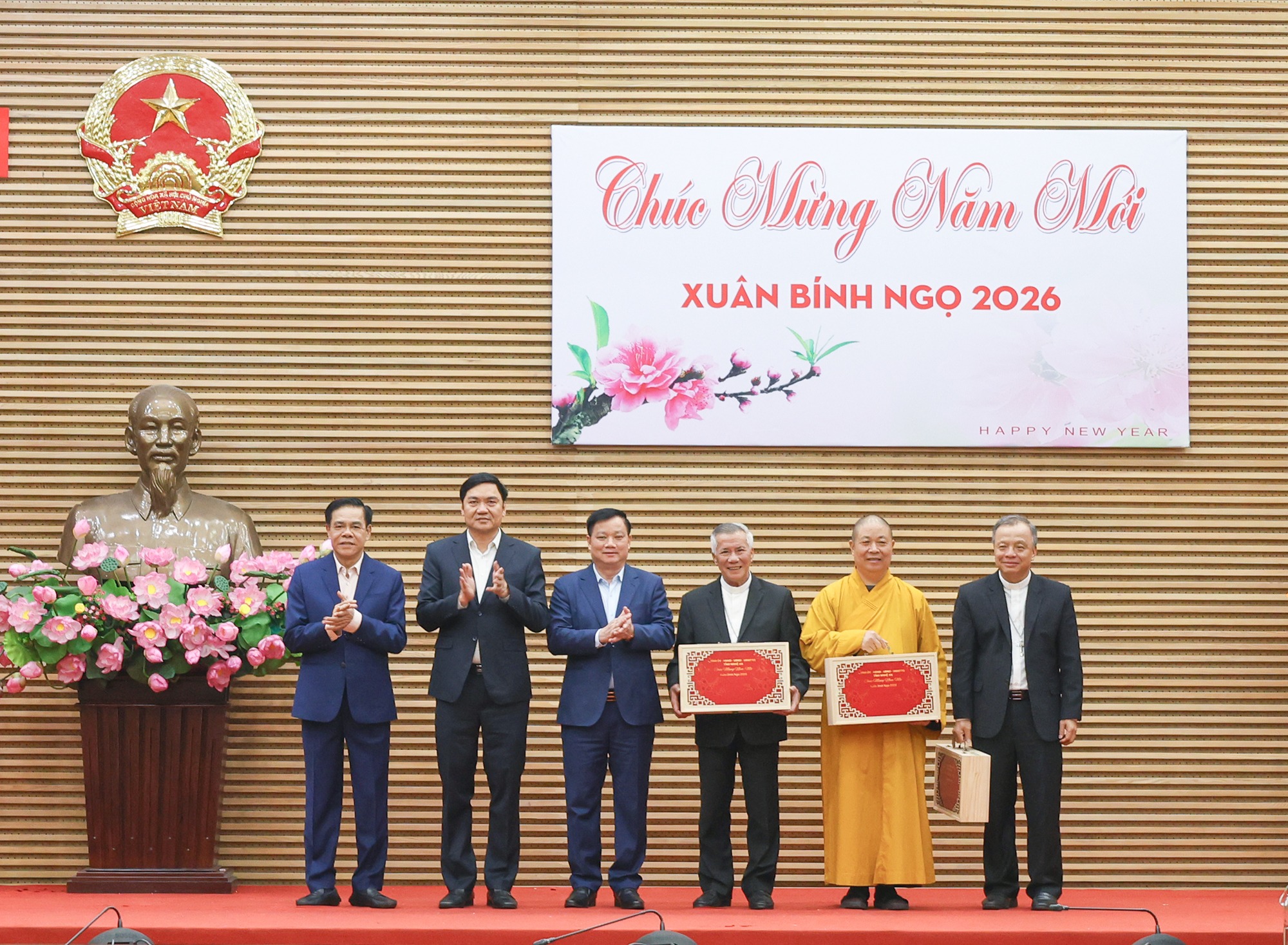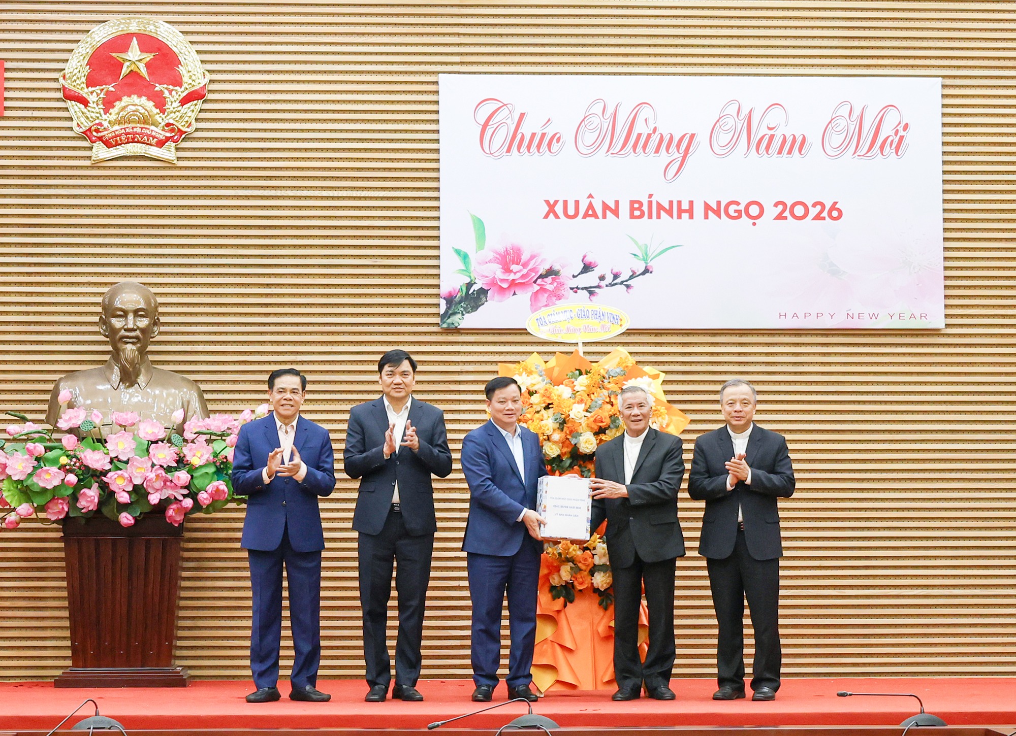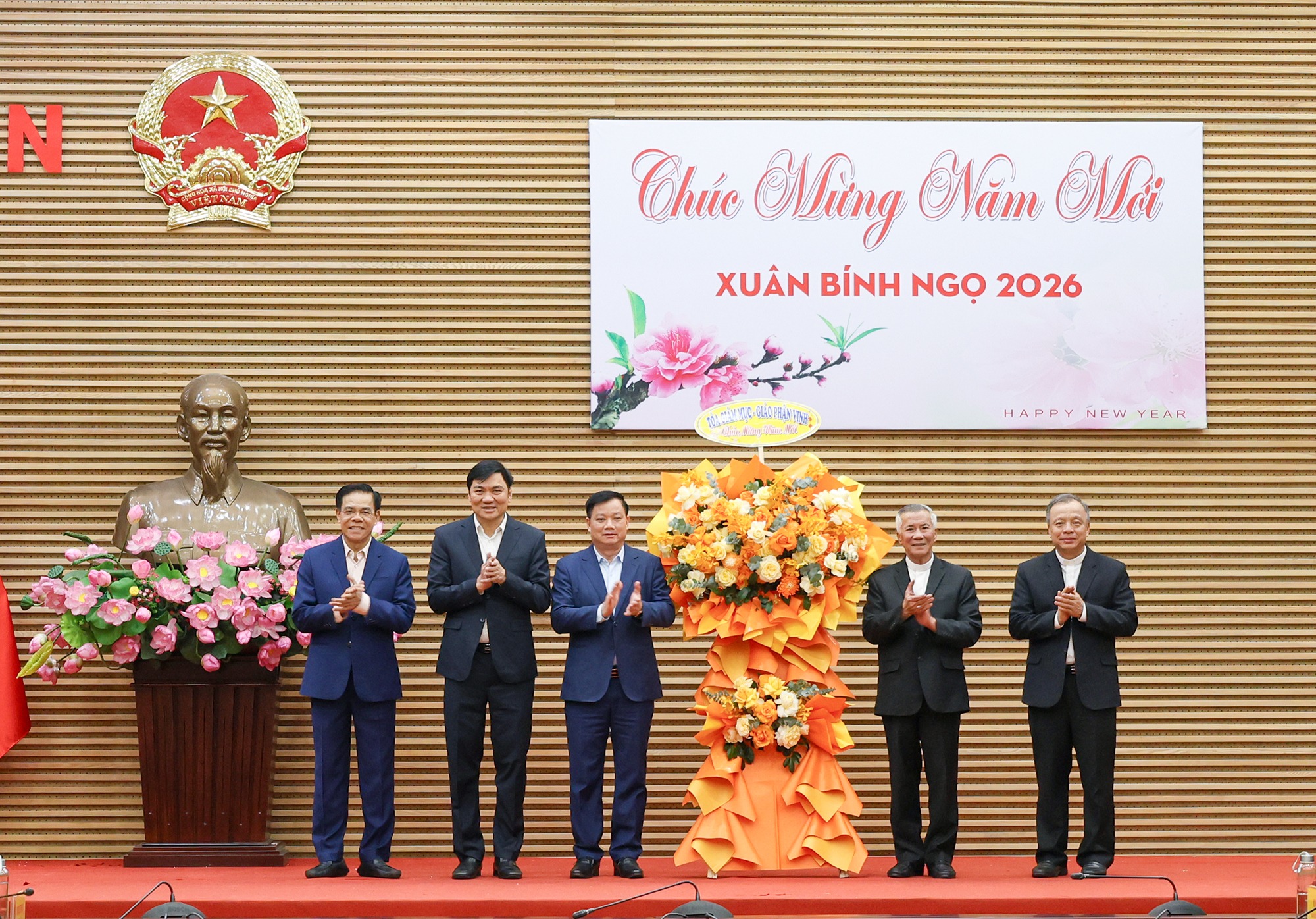Hướng tới năm Bính Ngọ, Giám mục Giáo phận Vinh chúc các đồng chí lãnh đạo tỉnh luôn dồi dào sức khỏe, phát huy trí tuệ để phục vụ nhân dân, giúp người dân được thụ hưởng cuộc sống bình yên, hạnh phúc. Với phương châm "Kính Chúa yêu nước", cộng đồng Công giáo cam kết luôn ủng hộ các chủ trương, chính sách của chính quyền, tuân thủ pháp luật và cùng chung tay xây dựng một xã hội ấm no, giàu bản sắc.