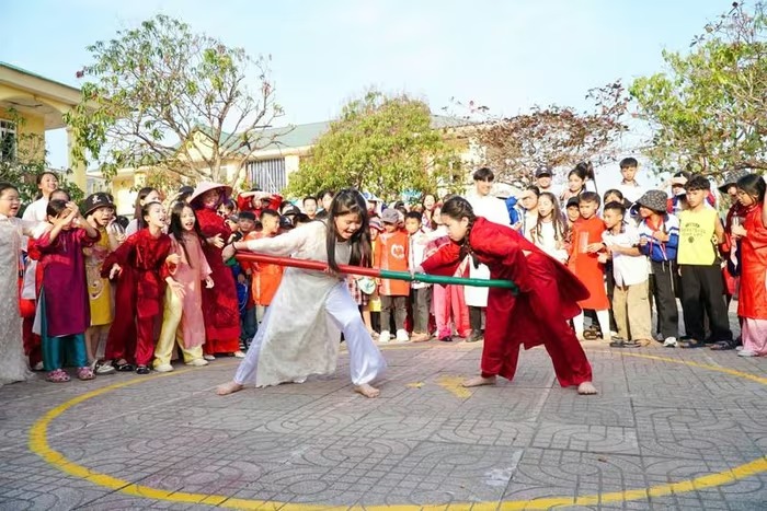 Ngày hội “Xuân yêu thương – Tết sum vầy” chào đón năm 2026 của Trường Tiểu học Thu Thủy (Cửa Lò, Nghệ An) đầy sắc màu vui tươi, ấm áp. Ảnh: Hồ Lài |