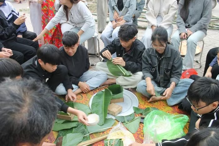 Bên cạnh hoạt động gói bánh chưng, các khối lớp của Trường THPT còn có nhiều hoạt động như tổ chức gian hàng tết - trạm sáng tạo GenZ, thi làm mâm cỗ ngày tết... Ảnh: Hồ Lài |