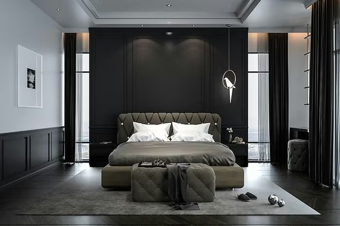 Trái lại, một số người lạm dụng tông màu quá tối (đen, xám đậm) cho toàn bộ căn phòng. Về lâu dài, gam màu này dễ gây cảm giác u uất, nặng nề vào mỗi buổi sáng thức dậy. Ảnh: Design Cafe |