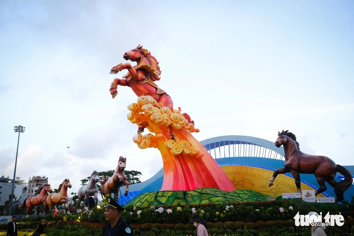 Theo ghi nhận, không gian trưng bày cụm linh vật ngựa chào xuân được thiết kế, thi công rất quy mô, công phu với chất lượng mỹ thuật cao.