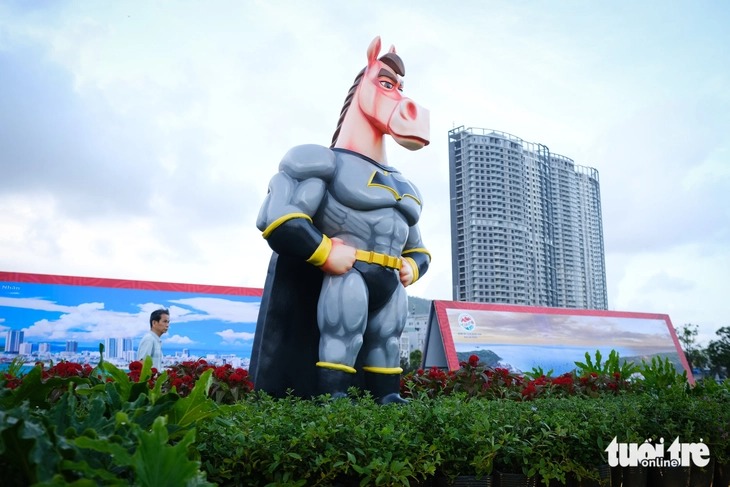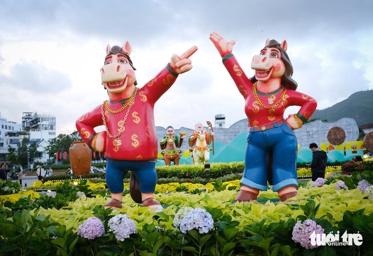 Hình tượng linh vật ngựa "mặt quạu" ngộ nghĩnh đang chiếm sóng tại cụm linh vật xuân Bính Ngọ ở quảng trường Nguyễn Tất Thành, phường Quy Nhơn, Gia Lai - Ảnh: TẤN LỰC |