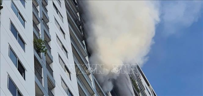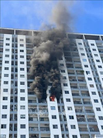 Vụ cháy tại chung cư phường Nam Nha Trang. Ảnh: TTXVN |