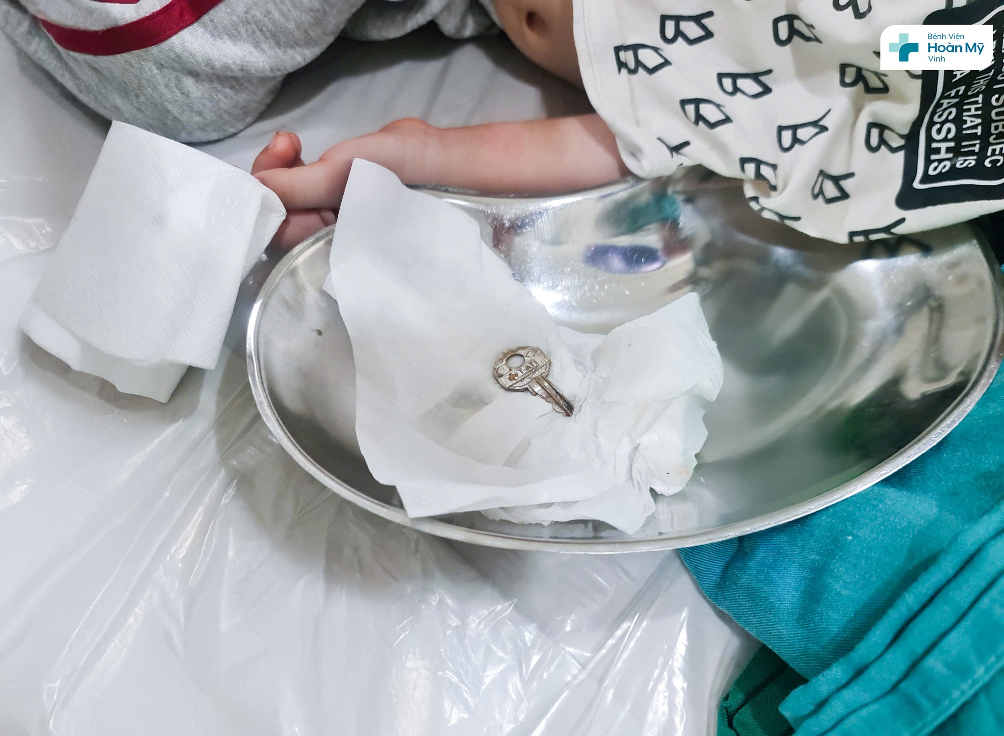 Theo người nhà, khoảng 30 phút trước khi nhập viện, trong lúc vui chơi, bé cầm chìa khóa và vô tình nuốt phải. Phát hiện sự việc, gia đình lập tức đưa trẻ đến bệnh viện để cấp cứu.