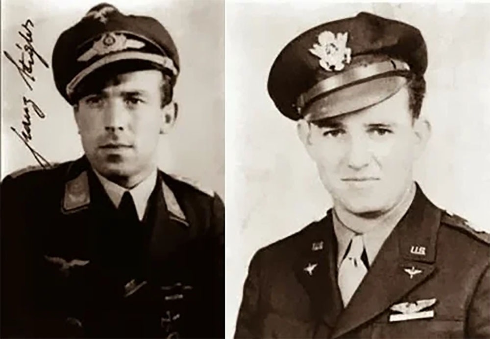 Trong số các phi công dưới mặt đất có Franz Stigler, một "át chủ bài" của Không quân Đức. Stigler vừa hạ cánh để sửa chữa sau một cuộc không chiến trước đó. Nhìn thấy chiếc B-17 đơn độc bay thấp qua căn cứ, Stigler lập tức cất cánh. Stigler chỉ cần thêm một chiến công nữa để nhận được Huân chương Chữ thập Hiệp sĩ - phần thưởng cao quý nhất của Đức Quốc xã cho những người phục vụ trong quân ngũ.