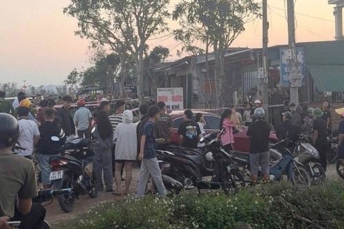 Người dân tập trung trước ngôi nhà xảy ra án mạng, chiều tối 15/2. Ảnh: Hùng Lê |