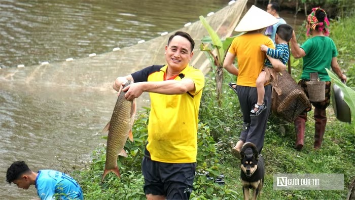Từ sáng sớm, anh Lương Văn Lợi (39 tuổi) đã ra thăm ao. Sau nửa ngày tháo nước, mặt ao gần cạn. Đến chiều, anh cùng những thanh niên trong họ bắt đầu kéo lưới. Cá trắm, cá chép nuôi quanh năm được chăm sóc kỹ lưỡng, nay đến ngày thu hoạch, con nào con nấy chắc mình, có con nặng tới 6–7 kg. Chỉ sau vài mẻ lưới, gần 30 kg cá được đưa lên bờ.