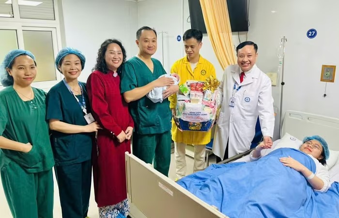 Ngay sau sinh, bé được đặt nằm trên ngực mẹ theo phương pháp “da kề da”, để hơi ấm đầu tiên con cảm nhận là vòng tay yêu thương của mẹ. Trong niềm vui ấy, PGS.TS Vũ Văn Du, Phó Giám đốc Bệnh viện đã tới thăm, chúc mừng và trao những lời chúc tốt đẹp nhất tới gia đình.