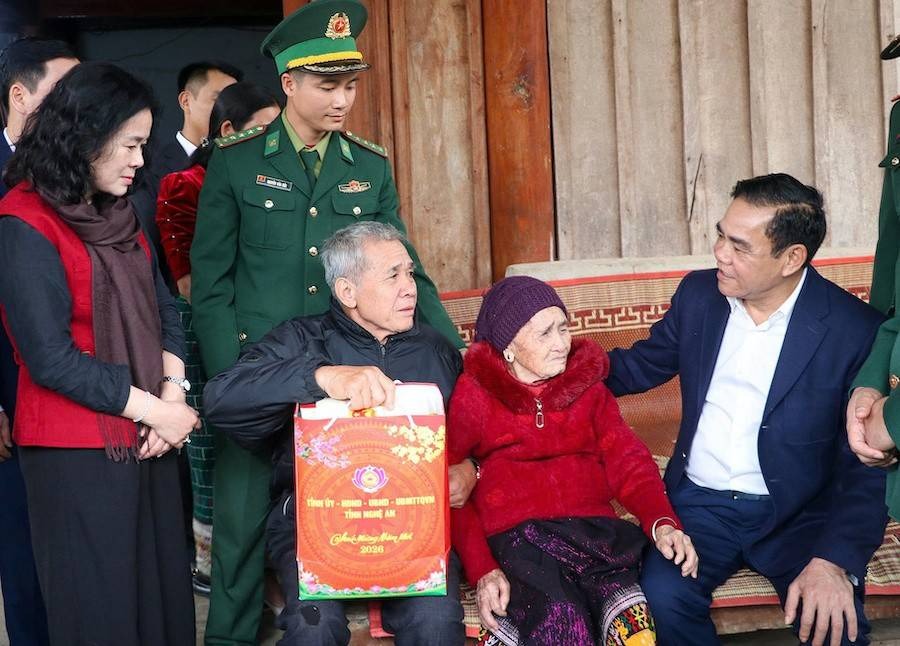 Ông Võ Trọng Hải - Chủ tịch UBND tỉnh Nghệ An tặng quà Tết cho người dân vùng biên |
